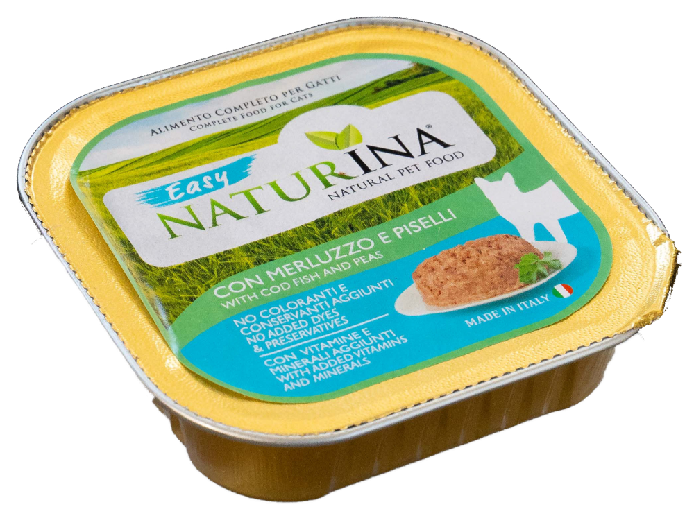 NATURINA EASY NASS MIT KABELJAU UND ERBSEN ist ein Alleinfuttermittel für ausgewachsene Katzen jeder Größe.