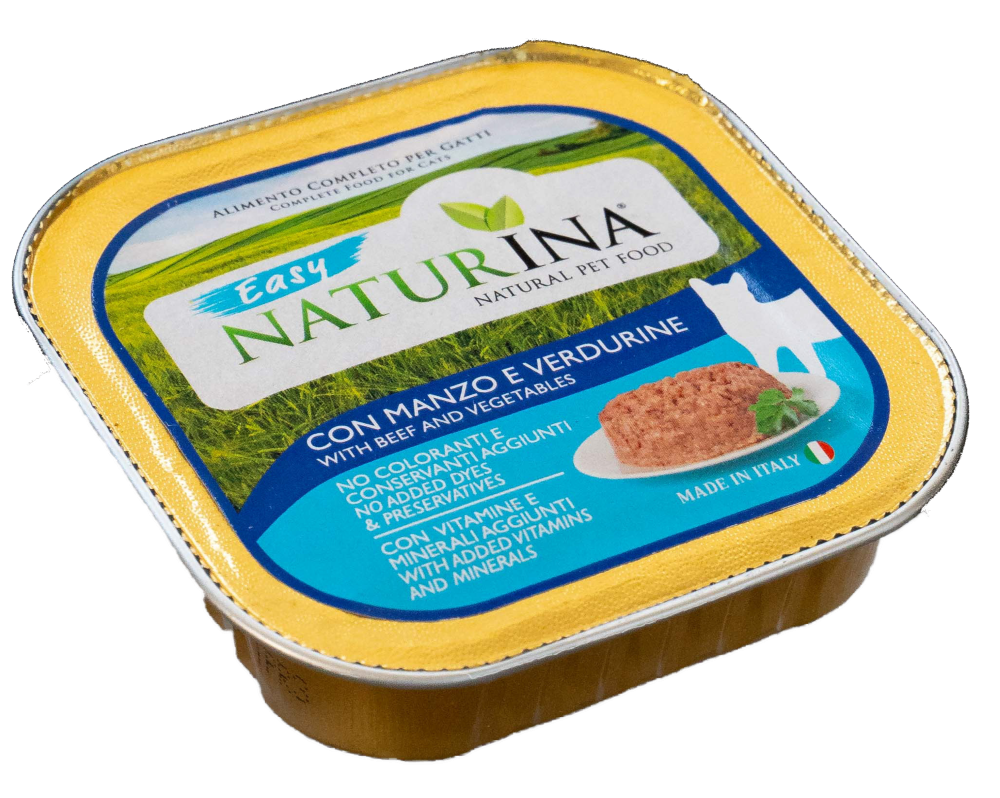 NATURINA EASY UMIDO RINDFLEISCH und GEMÜSE ist ein komplettes Lebensmittel für erwachsene Katzen aller Größen.