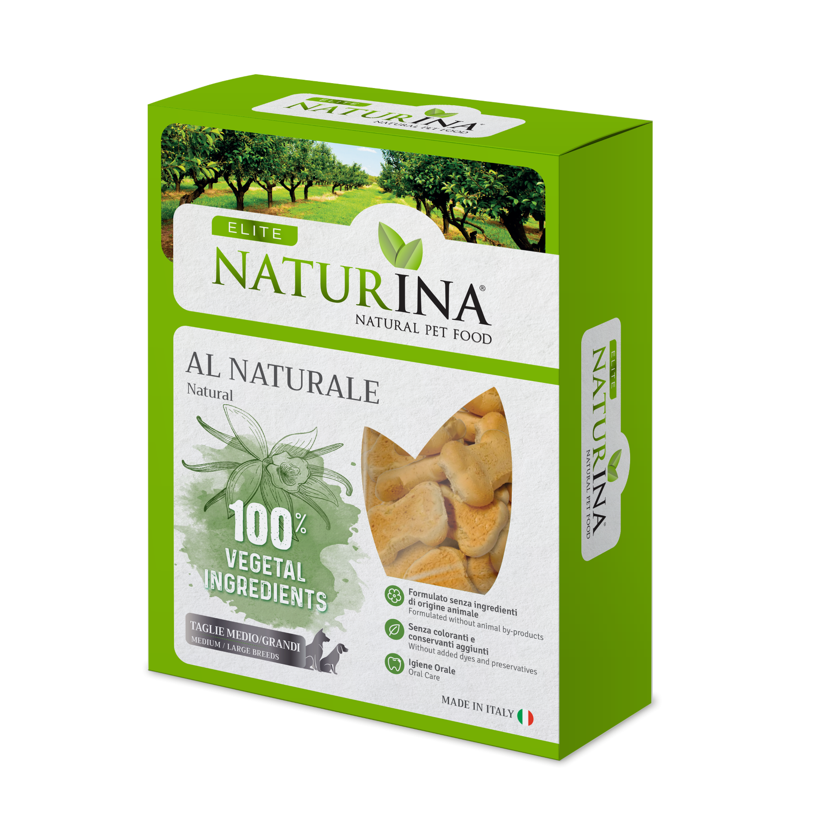 NATURINA AL NATURALE Kekse sind sehr lecker und verdaulich, weil sie ausschließlich mit hochwertigen natürlichen Zutaten hergestellt werden und eine köstliche tägliche Belohnung für Ihren vierbeinigen Freund darstellen. Der knochenförmige NATURINA AL NATURALE Keks eignet sich für Hunde aller Größen. Die ausschließliche Verwendung pflanzlicher Inhaltsstoffe ohne tierische Erzeugnisse macht es besonders geeignet für Hunde mit Formen der Lebensmittelhyperempfindlichkeit gegenüber Fleisch, Fisch oder tierischen Fetten. Die handwerkliche Produktion nach einem technischen Verfahren, dem sogenannten "Drahtziehen", verleiht dem Erzeugnis eine besondere Konsistenz und Rauheit, die, wenn sie täglich verwendet wird, zur Aufrechterhaltung der Mundhygiene beiträgt, die Bildung von Tartaren verringert und die Atemnot bekämpft. Die Ballaststoffzufuhr, die die traditionelle Mahlzeit ergänzt, macht den NATURINA-Keks zu einem Zusatzstoff bei der Verdauung, indem er den Transit des Magen-Darm-Trakts verbessert.