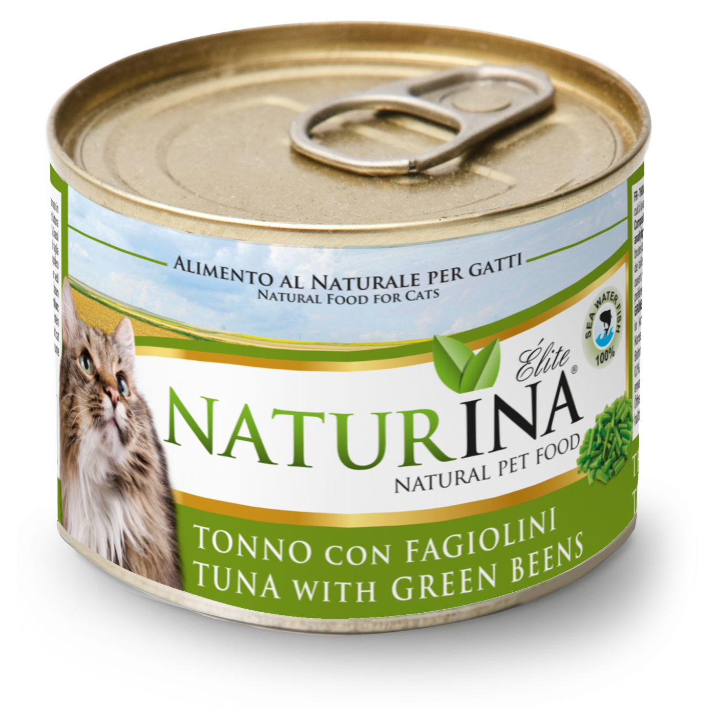 NATURINA ELITE TUNA with GREEN BEANS is a complementary food for adult cats at natural: steam cooked and preserved in boiled water (no jelly). Made with the best parts of tuna and green beans. Without added additives, colorings and preservatives.