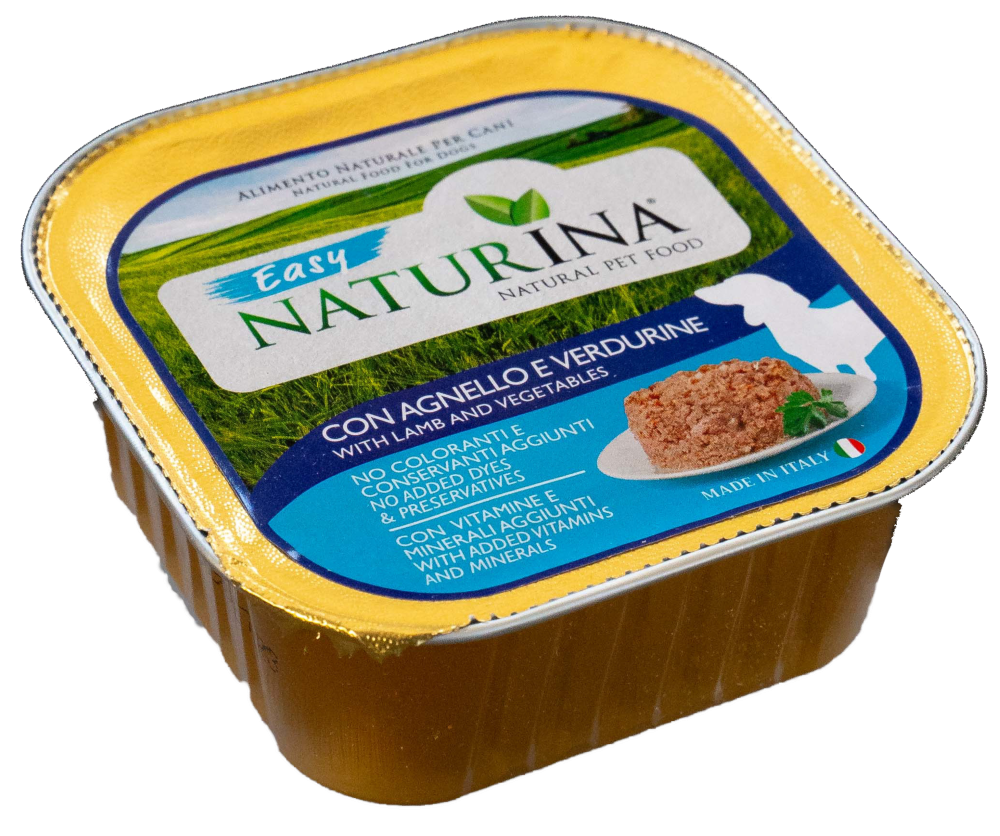 NATURINA EASY HUMIDE AGNEAU et LÉGUMES est un aliment complet pour chiens adultes de toutes tailles.