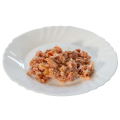 Le thon est pêché en mer par des méthodes visant à protéger l’écosystème marin sans nuire aux autres espèces animales (DOLPHIN SAFE). Nous n’utilisons que les parties les plus précieuses du thon (c.v. viande blanche)!