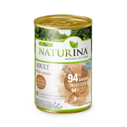 ALIMENTATION COMPLÈTE POUR CHIENS ADULTES DE TOUTES TAILLES. Formulé sans céréales avec une forte teneur en poulet et en bœuf. Il ressemble à du pâté mou avec des morceaux de légumes et de fruits. Il contient des sources naturelles de FOS et mos pour maintenir l’équilibre de la flore bactérienne et améliorer la compacité des selles, yucca claque qui contribue à atténuer leur odeur. Produit en Italie sans additifs nutritionnels, colorants et conservateurs artificiels ajoutés.