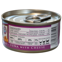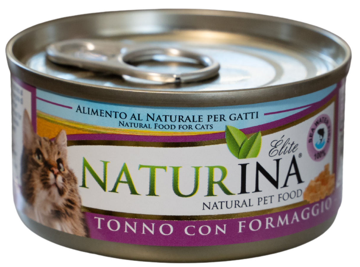 NATURINA ELITE TONNO con FORMAGGIO è un alimento complementare per gatti adulti al naturale: cucinato al vapore e conservato in acqua di cottura (no gelatina). Realizzato con parti pregiate di tonno e formaggio.