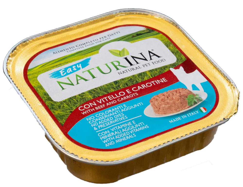 NATURINA EASY WET CALF i marchew jest kompletnym pokarmem dla dorosłych kotów każdej wielkości.