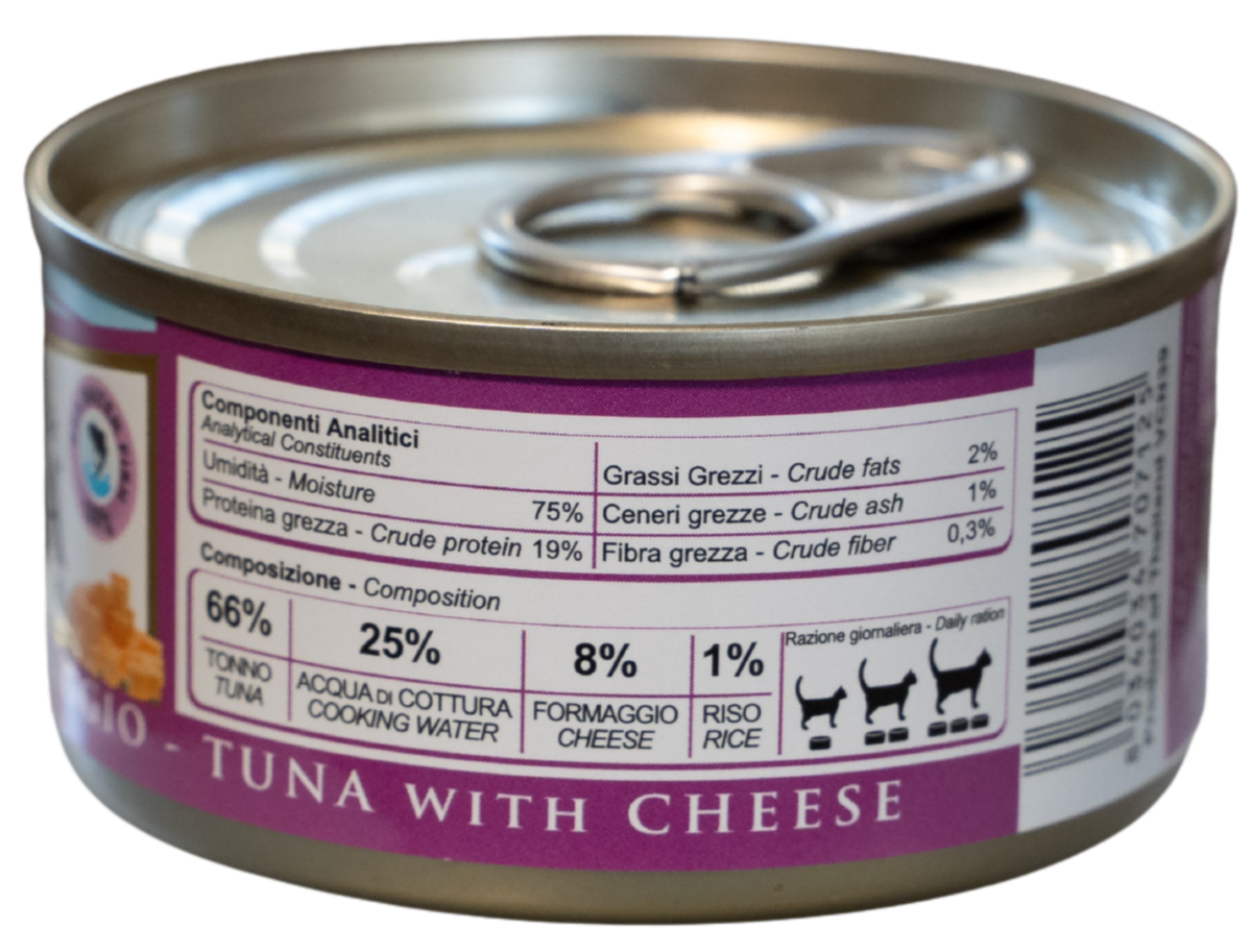 TUŃCZYK NATURINA ELITE z SEREM jest pokarmem uzupełniającym dla dorosłych kotów do naturalnego: gotowanego na parze i przechowywanego w wodzie do gotowania (bez galaretki). Wykonane z drobnych części tuńczyka i sera.