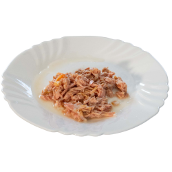 TUŃCZYK NATURINA ELITE z KREWETKAMI jest pokarmem uzupełniającym dla dorosłych kotów naturalnym: gotowanym na parze i przechowywanym w wodzie do gotowania (bez galaretki). Wykonane z drobnych części tuńczyka i krewetek.