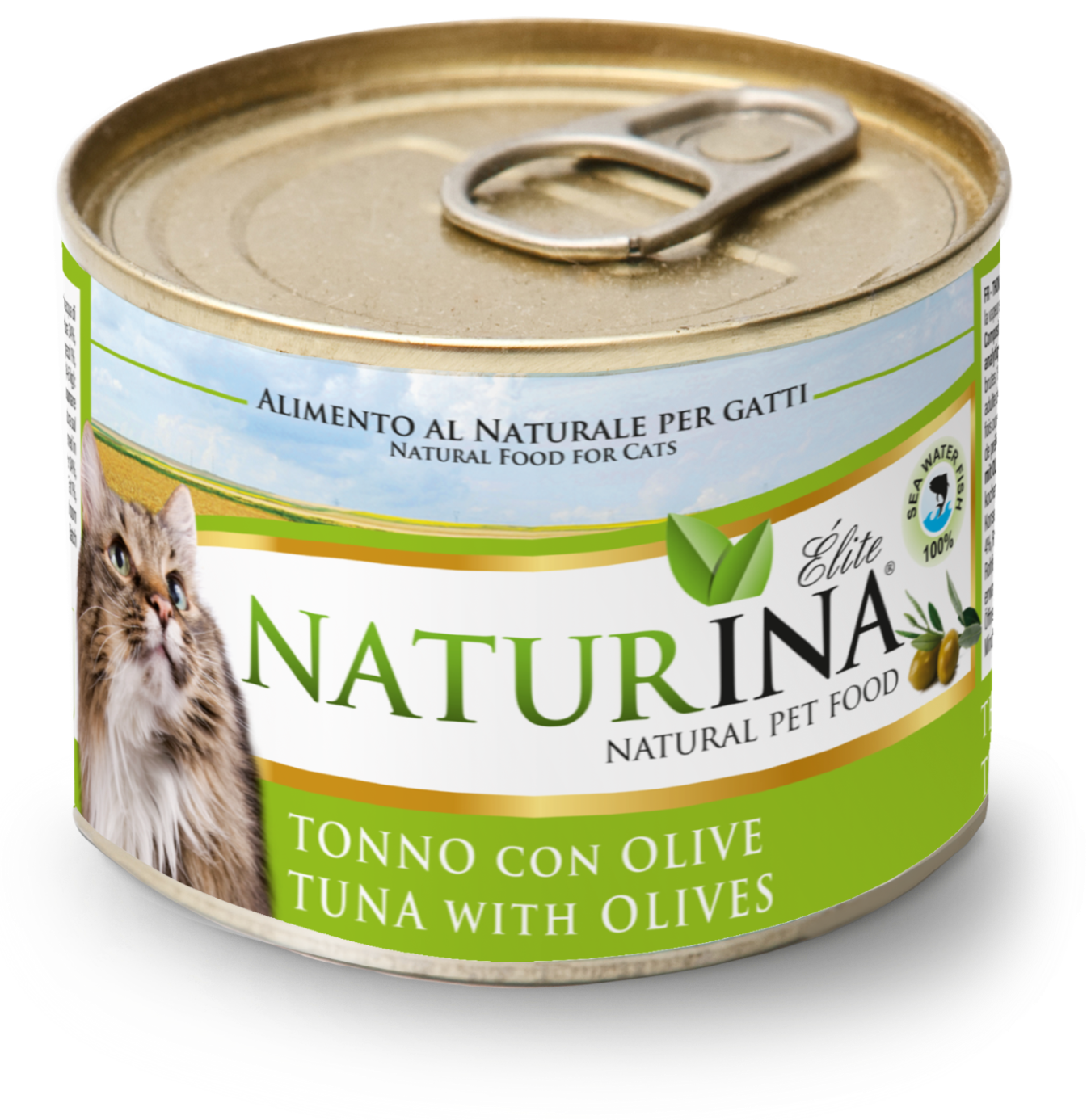 TUŃCZYK NATURINA ELITE z OLIWKAMI jest pokarmem uzupełniającym dla dorosłych kotów naturalnym: gotowanym na parze i przechowywanym w wodzie do gotowania (bez żelatyny). Wykonane z drobnych części tuńczyka i zielonych oliwek.