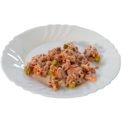 TUŃCZYK NATURINA ELITE z warzywami jest pokarmem uzupełniającym dla dorosłych kotów naturalnym: gotowanym na parze i przechowywanym w wodzie do gotowania (bez żelatyny). Wykonane z drobnych części tuńczyka i warzyw.