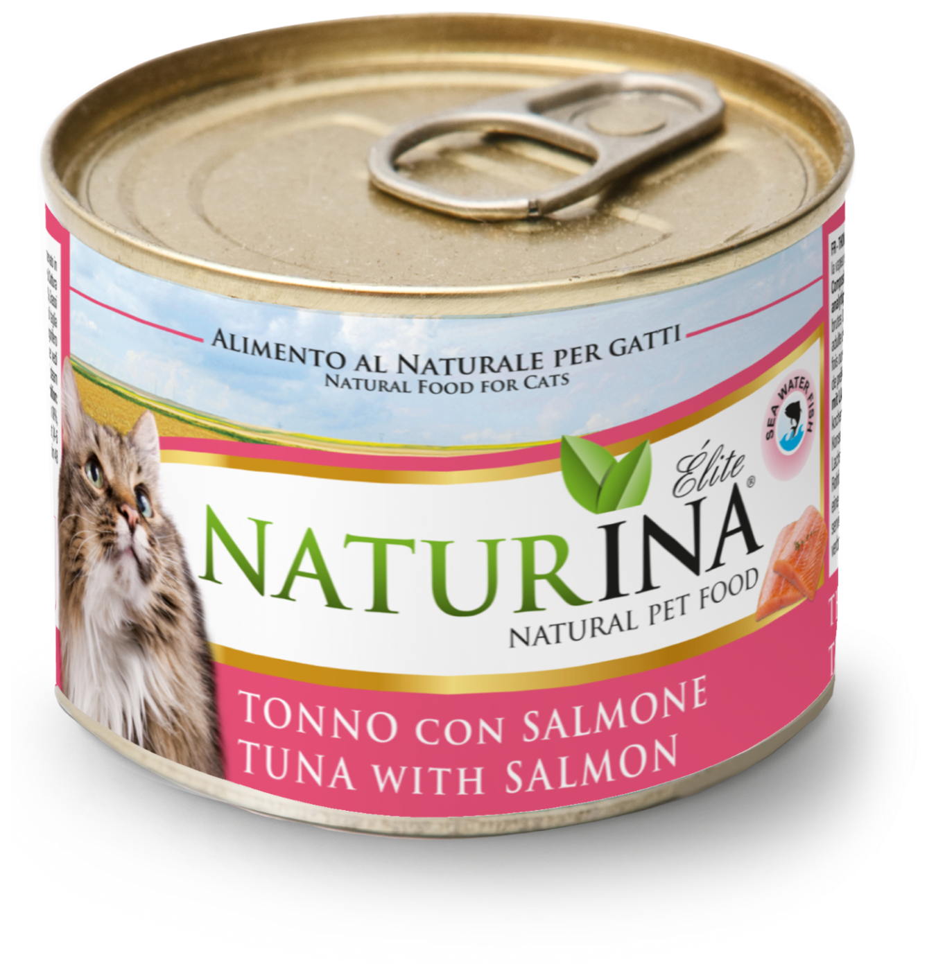 НАТУРИНА ЭЛИТ ТУНЕЦ с ЛОСОСЕМ является прикормом для взрослых кошек к натуральному: пропаривается на пару и хранится в воде для приготовления пищи (без желе). Сделано из мелких частей тунца и лосося.